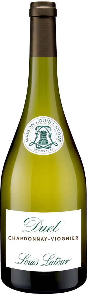 - Forte d'une expérience réussie avec le Chardonay d'Ardèche, puis le Grand Ardèche, la Maison Louis Latour s'est intéressée au cépage du Viognier en terre ardéchoise et son association originale avec le Chardonnay. Notre "Duet" est un vin unique car les deux cépages sont récoltés et fermentés en même temps. Les vignes étant assez éloignées les unes des autres, la dernière semaine de vendanges du Chardonnay coïncide avec la première semaine de vendanges du Viognier, préservant ainsi l'acidité de ce dernier. Il en résulte un vin équilibré, aucune des deux variétés n'écrasant l'autre. C'est un vin fin, souple et racé.